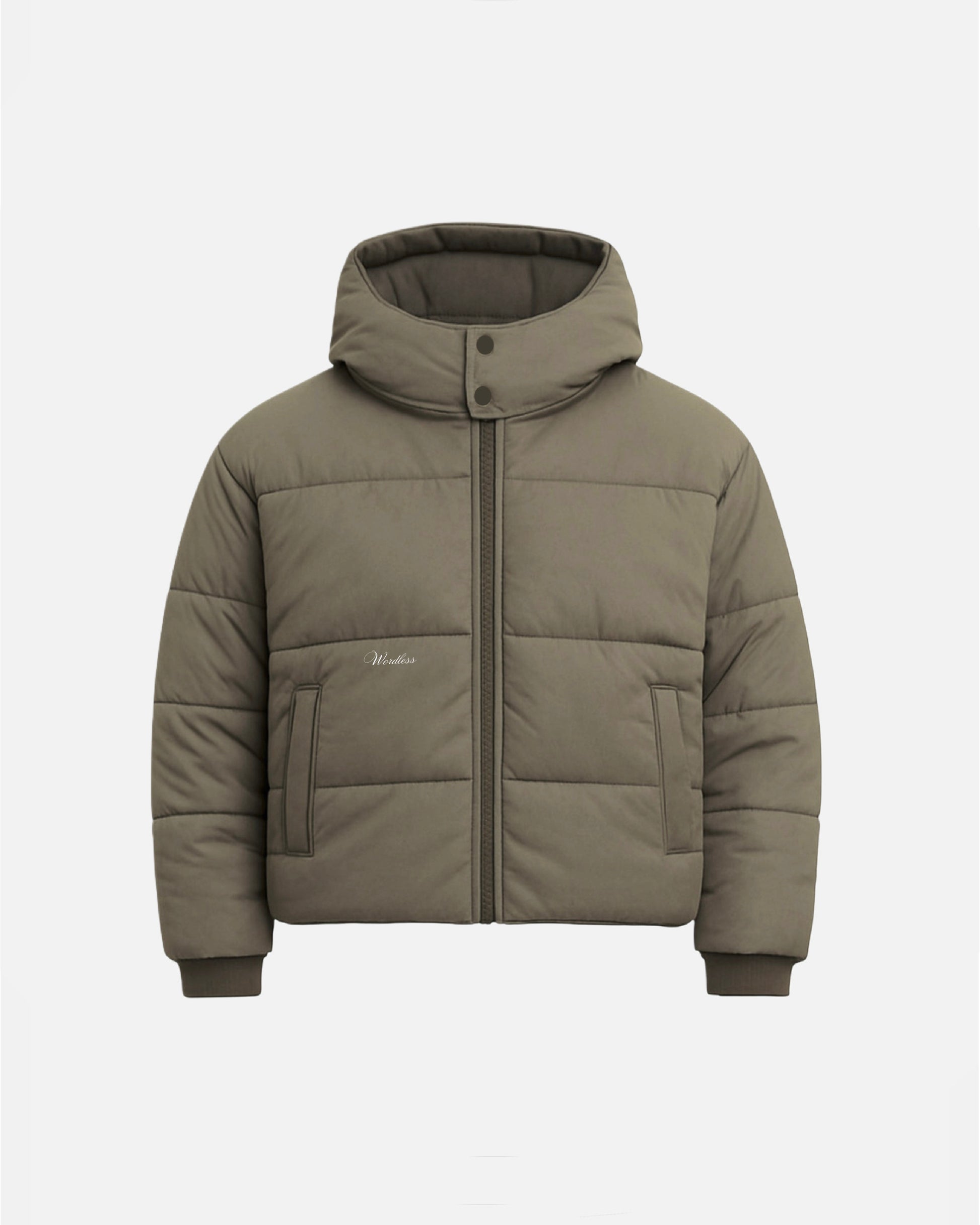 WORDLESS HOODED PUFFER JACKET WITH FLAP